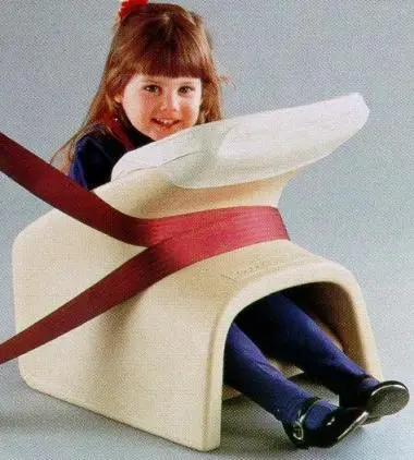 One early mass-produced example was Ford’s 1968 Tot-Guard, a plastic seat with a padded shield designed to cushion a child on impact an important step, even if it looks terrifying by today’s standards.