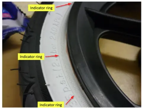 If your tyre isn't pumped up enough (flat tyre), it can get all wonky or misaligned on the rim. When this happens, your wheel might start wobbling, & your tyre could even pop off the rim! This is what it would look like, the white parts of the tyre are uneven.