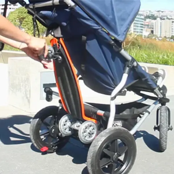 easily disconnect with the quick release buttons to make into a scooter to ride free
