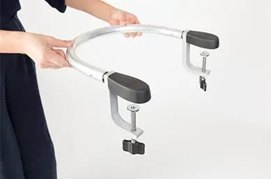 pod™ includes non-slip rubber grips on its c-shaped clamps, so you can rest assured that pod™ will stay safely secured to the table.