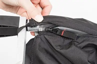 webbing safety loops to ensure the fabric is safely secured to the aluminium frame