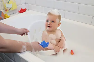 all round 360° support so bub is propped up safely during bath time in the bath, leaving your hands free