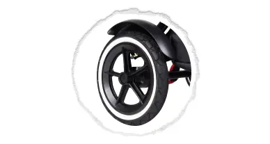 True, air filled tyres deliver the best form of all terrain adventure! Offering real bounce, topped with the buggy suspension, they deliver superior cushioning over all terrain... including plenty of rough stuff. And, like any good mountain bike, you’ll need to maintain tyre pressure (and maybe fix a rare flat) to ensure optimum ride on all your adventures!