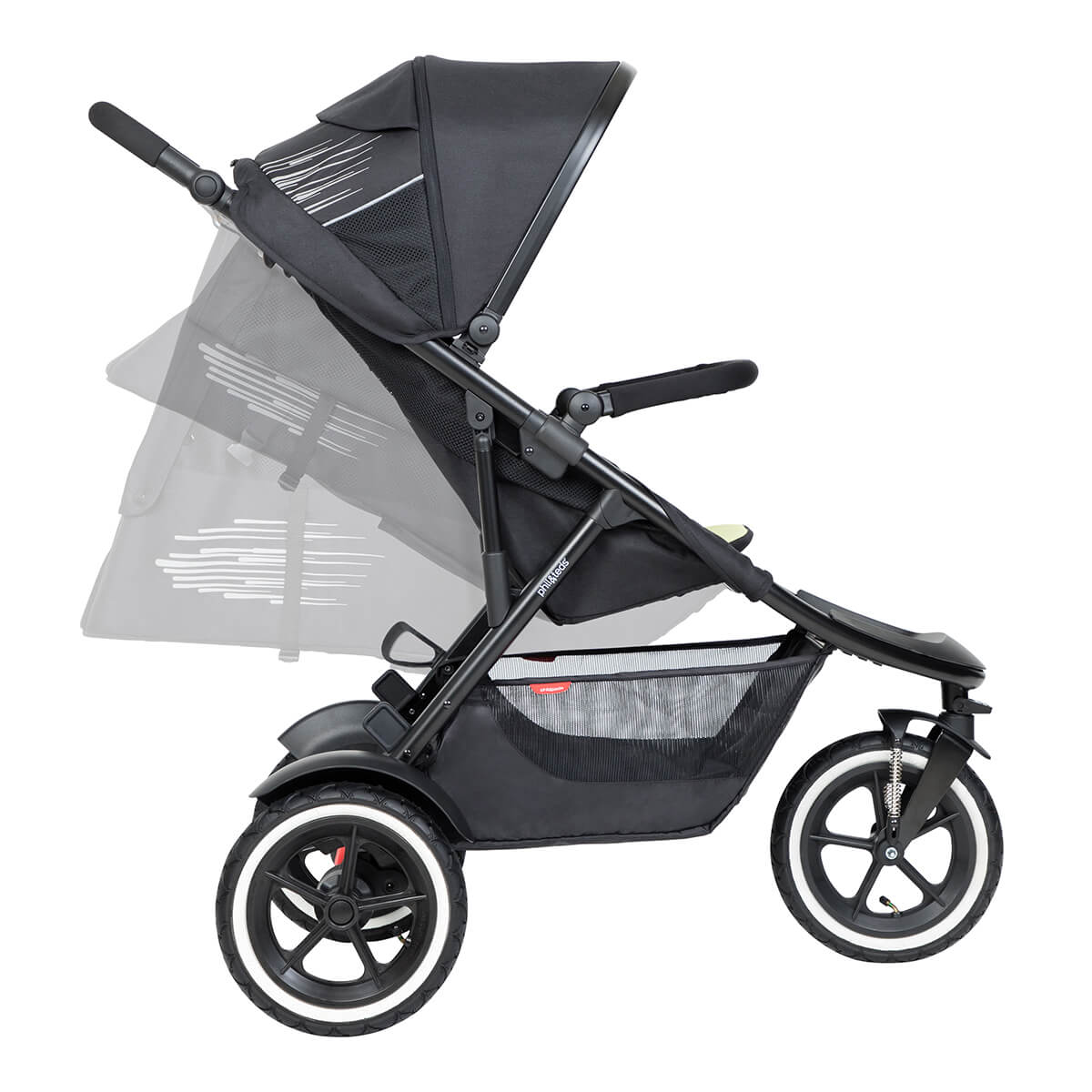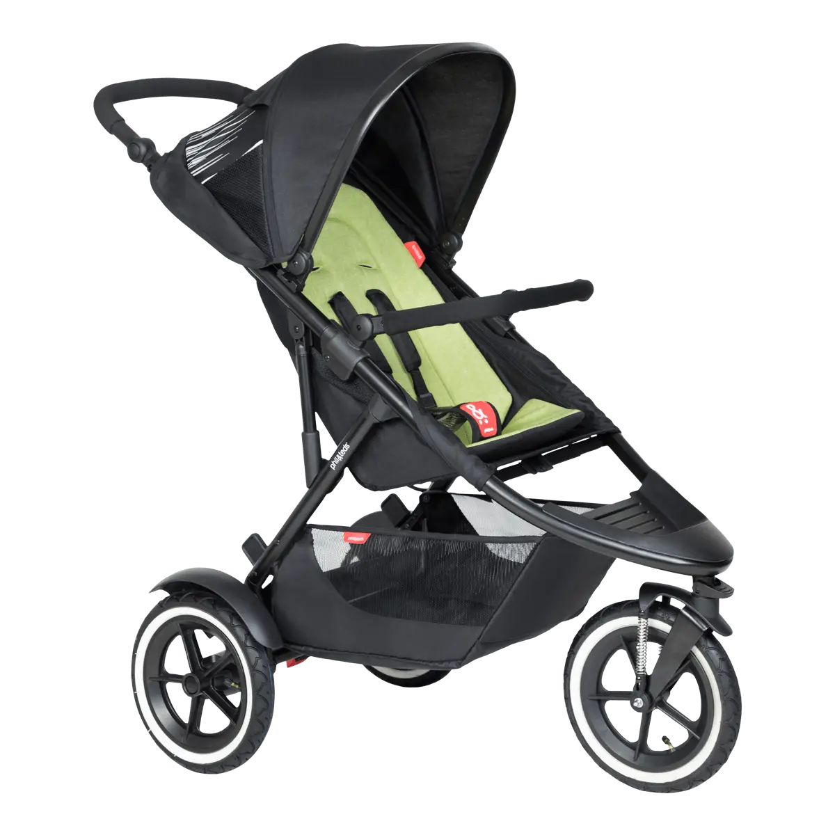 The seat also sits cushy inside the buggy frame & at the right height to deliver perfect weight distribution; the centre of gravity is ideal for kerb popping up & around town! You don’t feel like you have to use brute force on the handlebar to lift the nose of the buggy to get over a lil kerb!